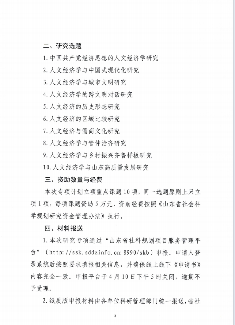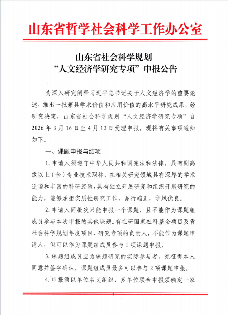 山东省社会科学规划“人文经济学研究专项”申报公告